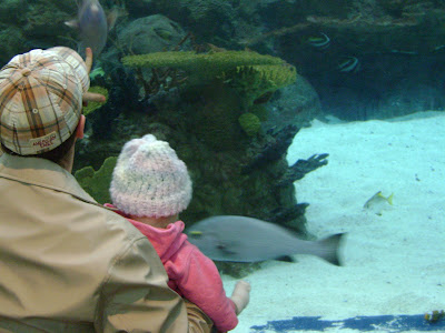 Sophie with daddy looking at the fish. I made her hat, I was soo proud! I love my new calling as an Activity Day Assistant. We learned how to loom hats. Awesome!